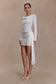The ELOWEN Knit Cowl Long Sleeve Top pairs fluid draping with a modern knit finish. Designed with a soft cowl front neckline, this longline silhouette features long sleeves that flare gently at the cuffs for subtle movement. Crafted from a semi-sheer knit and left unlined for a lightweight feel, this top layers effortlessly—perfect for both elevated daytime styling and refined evening edits.