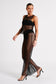 Main: 50% Polyester, 50% Rhinestone; Lining: 90% Nylon, 10% Elastane