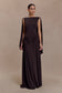 The EMORY Jersey Cape Maxi Dress is a statement silhouette defined by fluid lines and sculpted detail. Featuring a crew neckline and a fitted bodice, it’s enhanced with gathered accents through the front and skirt for subtle texture. At the back, a cut-out neckline is framed by a draped cape detail, creating dramatic movement from every angle. Partially lined for a smooth fit and cut to a maxi length, this dress delivers sleek sophistication with a modern twist.