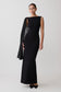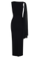The FARID Bandage Midi Dress With Chiffon blends sculpted structure with soft, fluid detail. Designed with an asymmetrical neckline, it creates a striking frame through the shoulders while the fitted bodycon silhouette contours the figure. A draped chiffon shoulder detail introduces movement and contrast against the structured knit fabrication. Falling to a sleek midi length and left unlined to maintain the stretch of the bandage knit, this dress balances bold shape with effortless elegance.