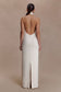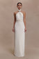 The FREJA Halter Maxi Dress With Hardware captures modern glamour through sculpted design and subtle shine. Featuring a halter neckline adorned with crystal hardware, it draws the eye upward while adding a touch of opulence. Gathering at the centre front accentuates the waist and hip, flowing into a relaxed bodycon fit that elongates the silhouette. The low scoop back adds a refined edge, while full lining and an invisible centre back zip ensure a seamless finish. This dress defines elegance — fluid, feminine, and unforgettable.