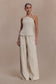 The GABBY Asymmetrical Neckline Linen Beaded Top brings directional detailing to a clean, contemporary silhouette. Crafted with an asymmetric neckline, it features a beaded tie that wraps around the neck and drapes across the right arm — creating a striking, sculptural moment. Fully lined for comfort and structure, this full-length top is finished with an invisible zip closure for a seamless fit. Elevated and artfully refined, this top is designed to stand out through subtle sophistication.