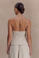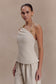 Asymmetrical Neckline Linen Beaded Top - Natural
