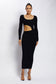 Cut Out Asymmetric Knitted Midi Dress - Black