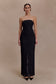 The GEMMA Strapless Mesh Maxi Dress blends clean lines with sculptural detailing for a modern, feminine silhouette. Designed with a straight strapless neckline and curved waist seam, it accentuates the form with subtle precision. The internal boning and built-in bodysuit provide support and structure, while the mesh overlay adds soft texture and depth. Fully lined for comfort and finished with a snap button gusset closure, this fitted bodycon silhouette redefines minimal glamour with a refined edge.