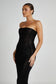 GEMMA is a strapless, full-length maxi dress with mesh lining and sequinned fabrication. Fashionably flashy, it has a fairly daring look with a stretchy mesh base and a sewn-in undergarment that's slightly visible. Cut from pure polyester and lined with MESHKI elastane blend, this dress is comfortable and sturdy. The silhouette is a fairly simple cut in order to fully show off the intense detailing, like the full-body beading, corset-like panelling at the bodice, and clean, fitted skirt. Look like a vision by pairing Gemma with high heels like Kailani Platform Heels.