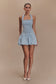 The GENIA Denim Bubble Mini Skirt is designed with a flat yoke and a centre back zip for a sleek fit. They feature a bubble shaped lower skirt, creating a playful and voluminous silhouette, with a mini length and a fully lined interior for comfort. This skirt is an ideal match with the MESHKI Basics, offering a coordinated and stylish ensemble.