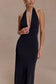 The GENIE Slinky Halter Midi Dress is designed to make an effortless statement. Featuring a deep plunging halter neckline with a delicate button closure, it frames the décolletage with refined sensuality. Crafted from MESHKI’s signature slinky fabrication, it contours the body with a smooth, sculpted finish while offering comfortable stretch and support. Fully lined and cut to a flattering midi length, this dress exudes quiet confidence — minimalist, polished, and endlessly captivating.