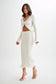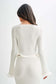 The GIGI Long Sleeve Knit Top is a stylish and versatile piece perfect for elevating your wardrobe. Featuring a flattering scoop neckline and front clasps, this open-front top exudes effortless elegance. The long sleeves and unique wire ripple hems on both the sleeves and the bottom add a distinctive touch. Made from an unlined knit for a lightweight and comfortable feel, it pairs beautifully with the Gigi Knit Midi Skirt for a coordinated and chic outfit.