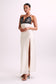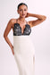 The GINA is a sleeveless maxi dress with a plunging neckline and loose, flowing hem. The design is elegant and sophisticated, with delicate lace bust panels and a soft cowl neck that streams into slender spaghetti straps. These traps cross at the back, beautifully framing the low, open back. The loose, relaxed fit cascades around the legs and is accentuated with a thigh-high skirt split, making for an artful silhouette.