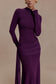 The GRAYSON Knit Chiffon Maxi Dress brings together the structure of knitwear with the fluidity of chiffon. Designed with a high neckline and long sleeves, it’s cut to a bodycon fit through the torso before falling into an A-line skirt that flows gracefully with every step. A chiffon draped overlay detail adds soft dimension and movement, balancing texture with ease. Unlined for a lightweight feel, this dress embodies understated sophistication — refined, modern, and effortlessly wearable.
