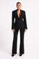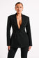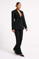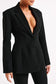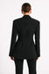 GREER is a long-sleeved blazer with a plunging neckline, sewn-in shoulder pads, and front button closure. A cinched waist paired with wide shoulders and a slightly structured fit create a silhouette that’s powerfully feminine and universally flattering. Subtle details, like the self-fabric-covered buttons and the faux breast pocket, add visual texture to the blazer’s modern minimalist vibe.