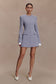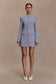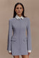 The GRETCHEN Suiting Mini Dress takes suiting into modern territory with removable detailing for versatile styling. Featuring a sharp white collar and cotton sleeve cuffs that can be detached for a cleaner finish, it’s framed with long sleeves and shoulder pads for structure. The button-front opening is concealed with a sleek placket, while non-functioning pocket flaps add polish. Fully lined and cut to a mini length, this dress is the perfect fusion of tailoring and femininity.