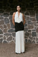 Slinky And Mesh Halter Maxi Dress - Black/White