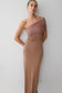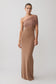 One Shoulder Mesh Maxi Dress - Tan