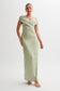 Off Shoulder Satin Maxi Dress - Sage