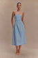 The HARLYN Denim Midi Dress is a refined take on classic denim, blending structure with effortless femininity. Designed with a flattering princess neckline and an underbust panel detail, this dress contours the body while offering a sleek, sculpted fit. The fitted bodice transitions into an elegant A-line skirt, enhanced by front and back pleat details for graceful movement. Adjustable straps ensure a customisable fit, while the back zip with hook-and-eye closure provides a seamless finish. Falling at a chic midi length, this dress is a versatile staple that pairs perfectly with heels or boots for a polished, modern look.