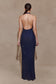 The HARRIET Halter Neck Diamante Maxi Dress is designed to shine under every spotlight. Featuring a halter neckline with a plunging V front, it fastens with a back neck button closure for a clean, secure finish. Gathering at the bust adds soft texture, while the fitted bodycon silhouette skims the frame to a floor-length hem. Fully mesh lined and completed with an invisible side zip, this dress delivers sleek glamour with a confident edge—perfect for statement evenings.
