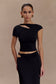 The HAVEN Slinky Twist Top is your go-to for sleek, statement styling. Designed with a twisted front neckline and cap sleeves, this cropped silhouette hugs the body in all the right places. A low-cut back adds an unexpected touch of allure, while full lining ensures a smooth, flattering fit. Pair with the matching skirt for a modern set that’s equal parts sultry and sophisticated.