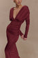Long Sleeve Plunge Maxi Dress - Wine
