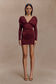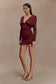 Long Sleeve Plunge Mini Dress - Burgundy
