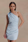 One Shoulder Linen Mini Dress - Powder Blue