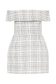 Tweed Off Shoulder Mini Dress - White Check