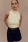 Introducing the ROBERTA High Neck Cable Knit Top, a chic and cosy staple that effortlessly elevates your wardrobe. This sleeveless top features a stylish high neckline that frames the face beautifully, making it a perfect choice for layering or wearing on its own. The cropped length adds a modern touch, while the chunky cable design adds texture and visual interest. Crafted for both comfort and style, this top ideal for transitioning from day to night.