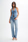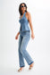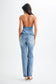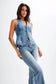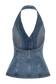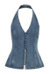 Button Front Halter Denim Longline Top - Washed Mid Blue