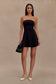 The INDIANA Strapless Suiting Mini Dress is a striking and sophisticated choice, perfect for making a bold fashion statement. Featuring a strapless design and a mini length, this dress highlights a fitted bodice that accentuates your curves. The PU binding and bow detail add a chic touch of elegance, while the centre back zip ensures a secure fit. The flare skirt, enhanced with godets, creates a graceful, flared silhouette that moves beautifully. Ideal for formal events or stylish evenings, the Indiana Dress combines classic tailoring with modern flair for a truly standout look.
