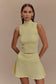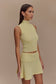 The INDY Pointelle Knit Top is a refined take on modern femininity. Designed with a high neckline and a sleeveless silhouette, this fitted top hugs the body while offering a delicate, textured appeal. Contrast rib detailing on the upper and lower body adds subtle dimension, while a scalloped waist frill brings a soft, romantic touch. Crafted in a pull-on design for effortless wear, this top pairs perfectly with the Indy Pointelle Knit Mini Skirt for a coordinated look that blends sophistication with playful charm.