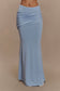 The IRENE Gathered Knit Maxi Skirt is a sleek, sculptural piece designed to flatter. Crafted in a soft jersey with a draped overlay, this pull-on skirt hugs the body in a bodycon fit before flaring into a mermaid shape for fluid movement. Unlined for a lightweight feel, it offers effortless sophistication with a modern edge. Pair it with the Irene Gathered Knit Top for a coordinated ensemble that exudes confidence and refined allure.