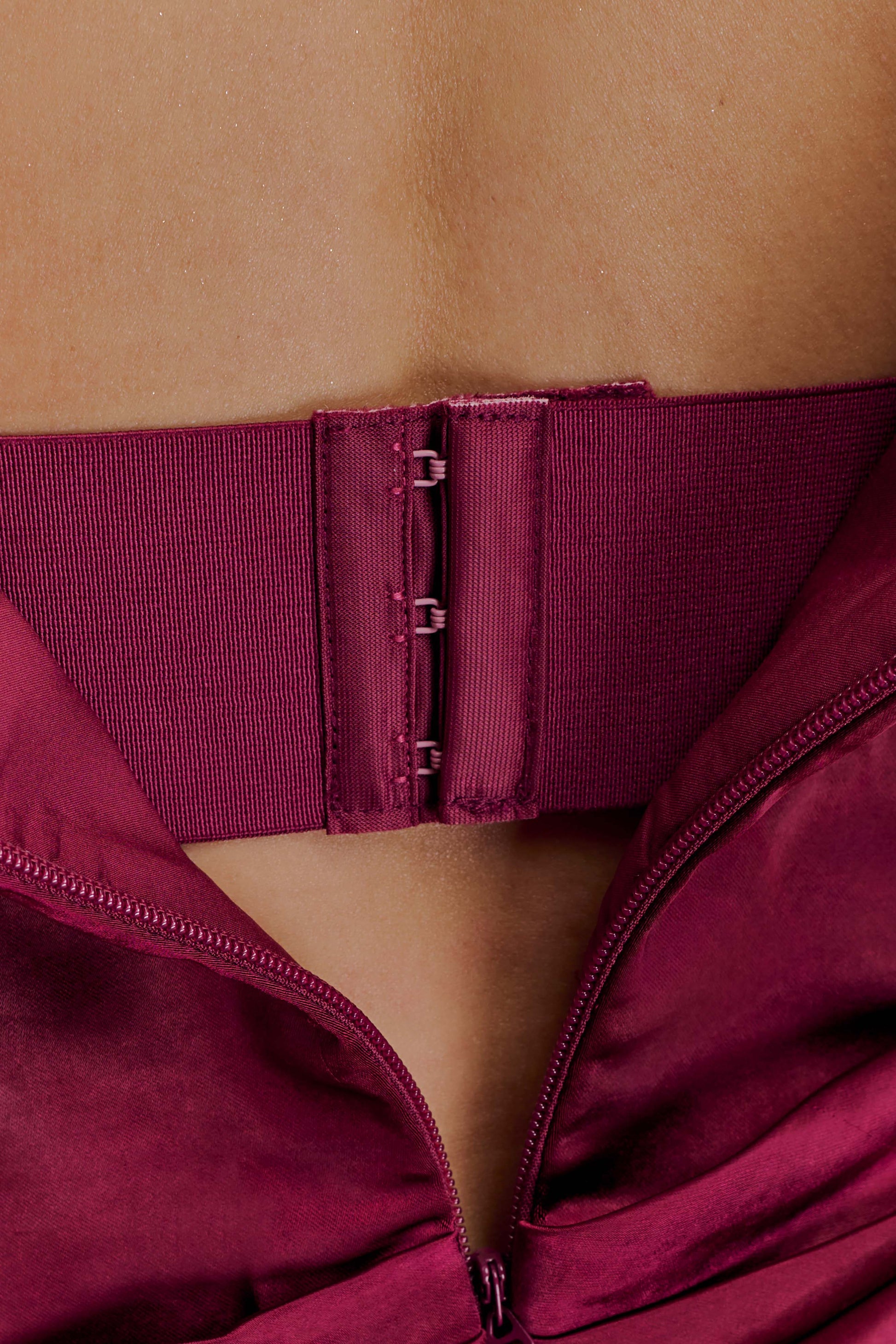 The IRIS Long Sleeve Satin Maxi Dress is a statement of refined elegance. Designed with an asymmetrical neckline and a gathered bust overlay, this silhouette drapes beautifully while enhancing the figure. The fitted, boned bodice provides structure and support, while the gathered hip detail adds soft dimension. A flowing maxi-length skirt completes the look with effortless grace. Finished with an internal elastic waist stay for a secure fit and a back zip with hook-and-eye closure, the Iris dress is perfect for formal occasions, black-tie events, and unforgettable moments.
