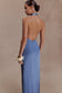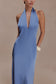 Satin Halter Maxi Dress - Steel Blue