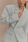 The JAMESON Cinched Suiting Blazer redefines classic tailoring with a contemporary twist. Featuring a sharp collar and lapel, this blazer stands out with its asymmetric wrap enclosure and button fastening that cinches the waist for a sculpted silhouette. Front pocket flaps add a refined touch, while the back vent ensures ease of movement. Fully lined for a polished finish, it pairs perfectly with the Jameson Pleated Wide Leg Pants for a power set that balances sharp structure with effortless flow.