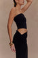 The JASIEL Strapless Knit Maxi Dress is designed to flatter with effortless ease. Featuring a fitted strapless bodice and a contrast knit skirt, this unlined maxi dress is elevated by an asymmetrical waistline and gathered hip detailing that enhances the body’s natural curves. The fishtail hem adds graceful movement, making this piece perfect for warm evenings, coastal escapes, or elevated everyday dressing with a refined twist.