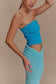 The JASIEL Strapless Knit Maxi Dress is designed to flatter with effortless ease. Featuring a fitted strapless bodice and a contrast knit skirt, this unlined maxi dress is elevated by an asymmetrical waistline and gathered hip detailing that enhances the body’s natural curves. The fishtail hem adds graceful movement, making this piece perfect for warm evenings, coastal escapes, or elevated everyday dressing with a refined twist.