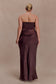 The JASMINE Strapless Satin Maxi Dress is the epitome of refined glamour. Designed with a softly gathered bust overlay, this strapless silhouette creates a romantic yet sculpted effect. The boned bodice provides structure and support, while the gathered hip detail enhances the figure with elegant draping. A maxi-length skirt flows effortlessly, ensuring graceful movement with every step. Featuring an internal elastic waist stay for a secure fit and a discreet side zip with a hook-and-eye closure, this dress is perfect for formal occasions, evening events, and modern bridal moments.