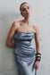 The JASMINE Strapless Satin Maxi Dress is the epitome of refined glamour. Designed with a softly gathered bust overlay, this strapless silhouette creates a romantic yet sculpted effect. The boned bodice provides structure and support, while the gathered hip detail enhances the figure with elegant draping. A maxi-length skirt flows effortlessly, ensuring graceful movement with every step. Featuring an internal elastic waist stay for a secure fit and a discreet side zip with a hook-and-eye closure, this dress is perfect for formal occasions, evening events, and modern bridal moments.