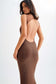 Hot Fix Maxi Dress With Mesh Back - Chocolate