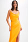 The JEMMA Draped Slinky Maxi Dress is a captivating blend of elegance and allure. It features a sophisticated cowl neckline and adjustable straps, allowing for a perfect fit. The asymmetrical draped waistline accentuates the silhouette, while a daring hip cutout adds a touch of modern edge. The asymmetrical hem enhances the flowing, graceful design of the dress. Fully lined for comfort, this maxi length dress is perfect for any special occasion where you want to make a stunning impression. The Jemma Draped Slinky Maxi Dress combines timeless sophistication with contemporary style.
