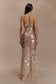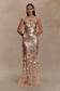 The JENNY Hand Embellished Maxi Dress is designed to catch the light—and the eye. Featuring a sleek halter neckline and fitted silhouette, it’s adorned with shimmering sequin disk embellishments that move beautifully as you do. A back tie detail adds a feminine finish, while the invisible zip ensures a seamless fit. Partially lined for comfort, this dress is your go-to for celebrations that call for statement sparkle and effortless elegance.