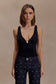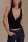 The SPENCER Slinky Top With Hardware brings a bold, modern edge to effortless draping. Designed with a plunging V neckline, it features soft gathering through the front that shapes the bust and waist with flattering precision. Polished hardware at the centre front adds a sculptural focal point, while the low back enhances the silhouette with subtle allure. Fitted through the bodice in MESHKI’s signature slinky fabrication, this top balances movement, shine, and confidence in one elevated piece.