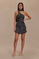 Satin Asymmetrical Mini Dress - Black Polka Dot Print