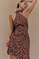 Satin Asymmetrical Mini Dress - Brown Polka Dot Print