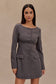 Boat Neck Suiting Mini Dress - Charcoal Grey