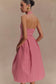 Step into timeless sophistication with the JUANA Halter Midi Dress, a graceful design that exudes femininity. Featuring a flattering halter neckline and a rounded waistline, this dress beautifully highlights your silhouette. The front and back skirt pleats add movement and texture, enhancing its refined charm. Designed in a chic midi length with a discreet side zip for easy wear, this dress is perfect for weddings, soirées, or any occasion where effortless elegance is key.