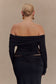The JUDY Slinky and Mesh Off Shoulder Top brings elevated edge to warm-weather dressing. Featuring an off shoulder neckline and long fitted sleeves, this partially lined top is designed with a gathered overlay and sheer mesh cut-out at the waist to contour and define the silhouette. With a sleek, fitted shape and soft drape, this top transitions effortlessly from golden hour to after-dark with bold femininity.