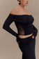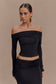 Slinky And Mesh Off Shoulder Top - Black
