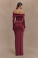 The JUDY Slinky and Mesh Off Shoulder Top brings elevated edge to warm-weather dressing. Featuring an off shoulder neckline and long fitted sleeves, this partially lined top is designed with a gathered overlay and sheer mesh cut-out at the waist to contour and define the silhouette. With a sleek, fitted shape and soft drape, this top transitions effortlessly from golden hour to after-dark with bold femininity.